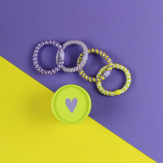 Haargummi-Set gelb/flieder mit 4 Haargummis in run