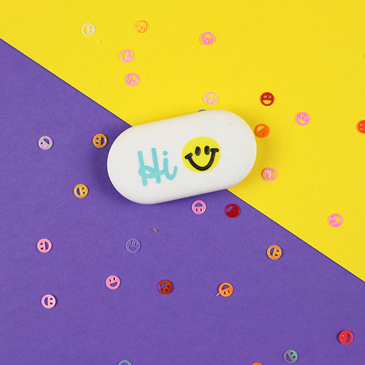 Radiergummi oval "Hi", gelb/blau