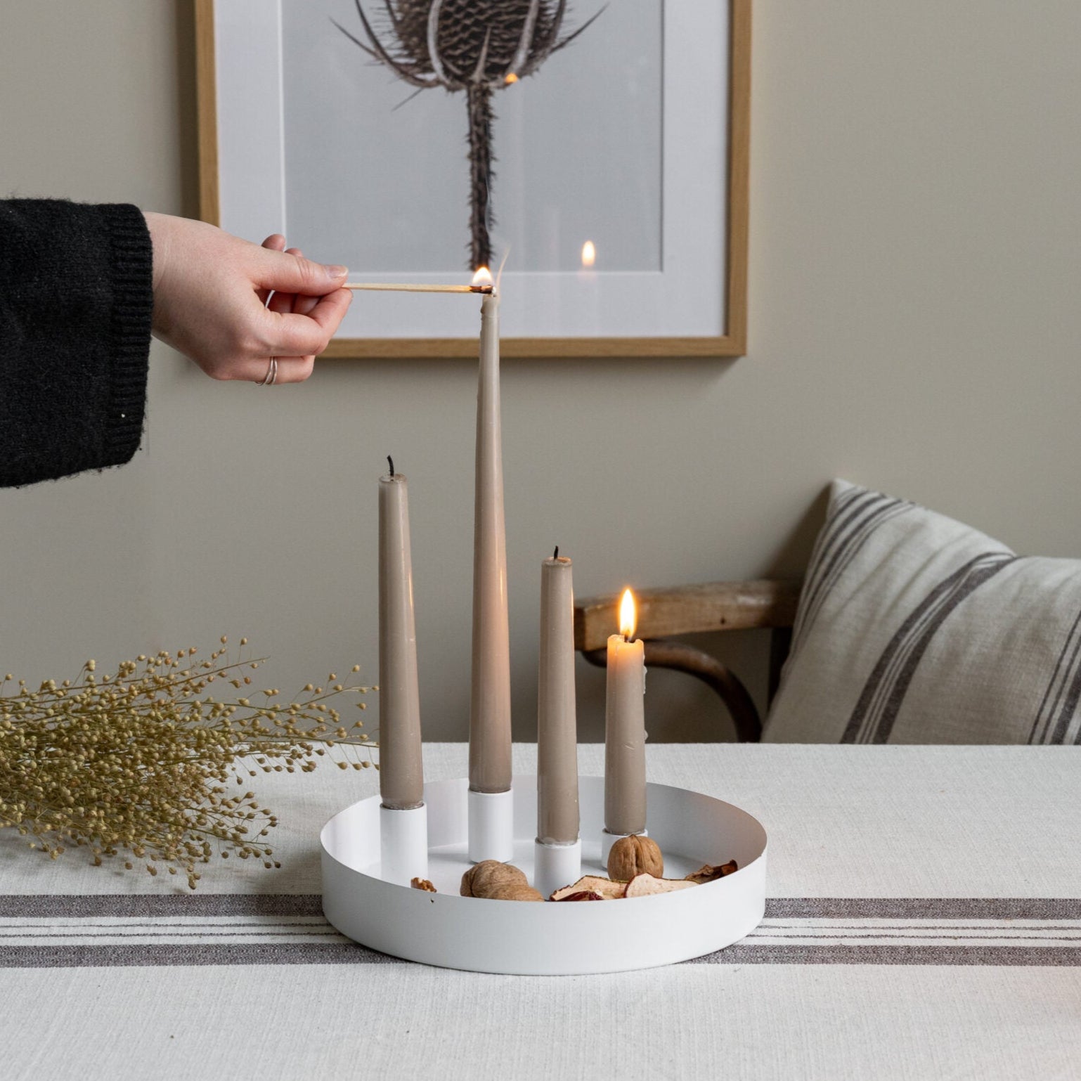 Kerzenteller "Sund", weiß für 4 Stabkerzen (magnetisch)