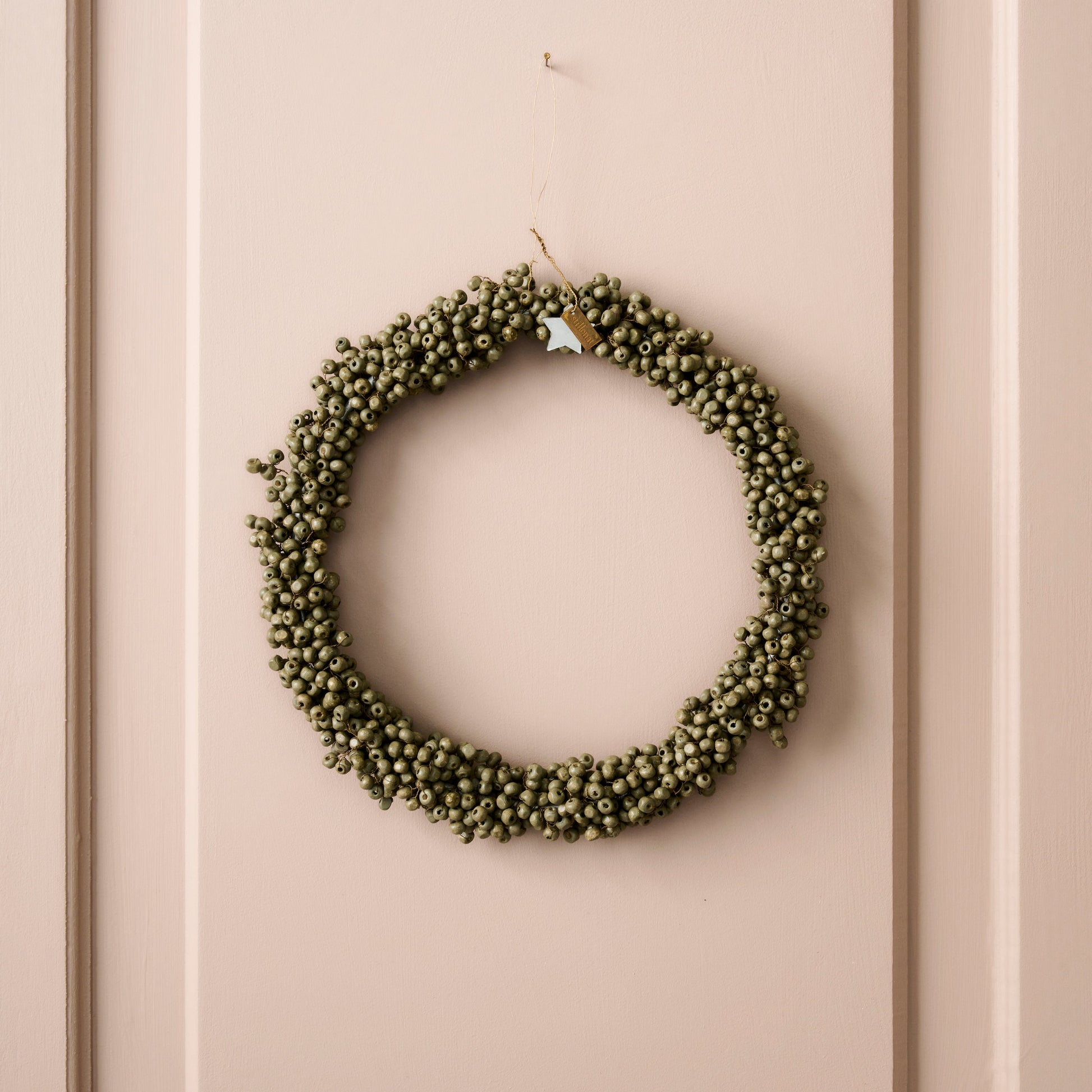 Ein handgefertigter Kranz aus natürlichen Holzperlen in sanftem Grün – ein elegantes Wohnaccessoire, das Ruhe und Stil in dein Zuhause bringt. Ob über der Tür, am Fenster oder als Teil deiner Dekoration: Dieses Stück setzt natürliche Akzente mit skandinavischem Charme.
