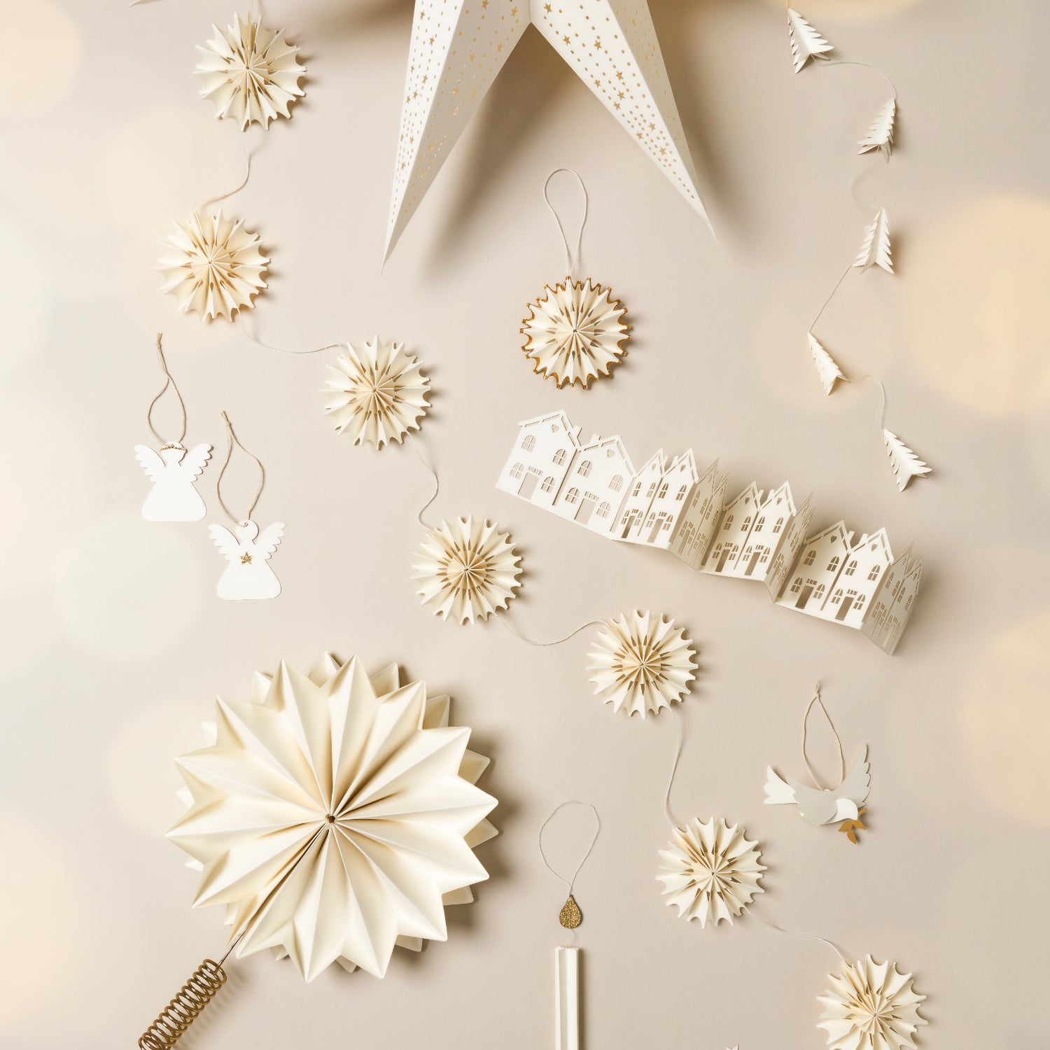 Dieses zarte Dekoband schmückt dein Zuhause mit acht handgearbeiteten Papier-Schneeflocken – perfekt für Fenster, Kaminsims oder Weihnachtsbaum. Die lange Länge von ca. 190 cm und die Ø 9 cm großen Flocken verleihen deiner Winterdekoration einen leichten, skandinavischen Charme.