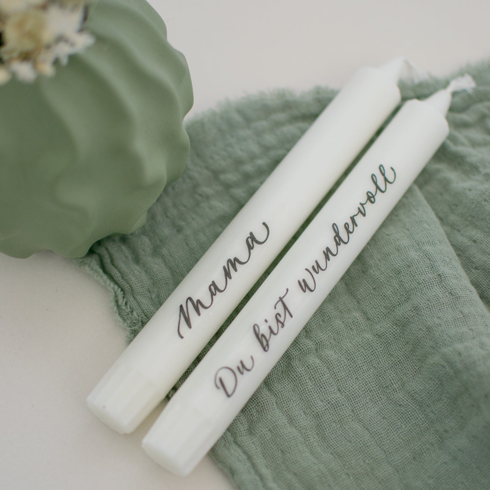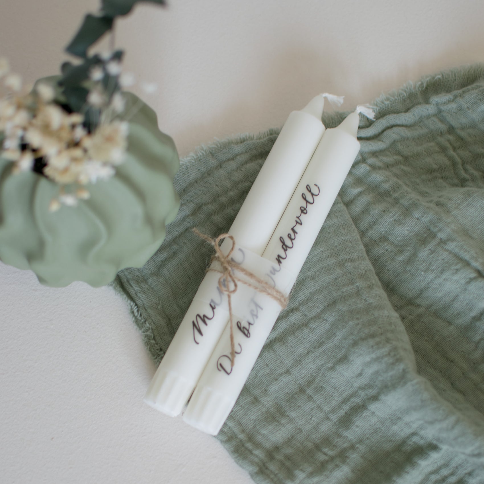 Dieses liebevoll gestaltete Stabkerzenset ist eine kleine Botschaft voller Wärme und Dankbarkeit – perfekt, um einfach mal Danke zu sagen.