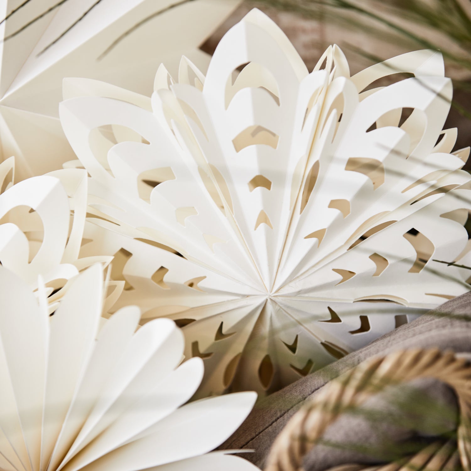 Der Papierstern „Stella“ von IB Laursen bringt mit seinem klaren Weiß und der achteckigen Form eine schlichte, festliche Atmosphäre in dein Zuhause. Ob im Fenster, über dem Esstisch oder an der Wand – er sorgt für stimmungsvolles Licht und nordisches Flair in der Winterzeit.