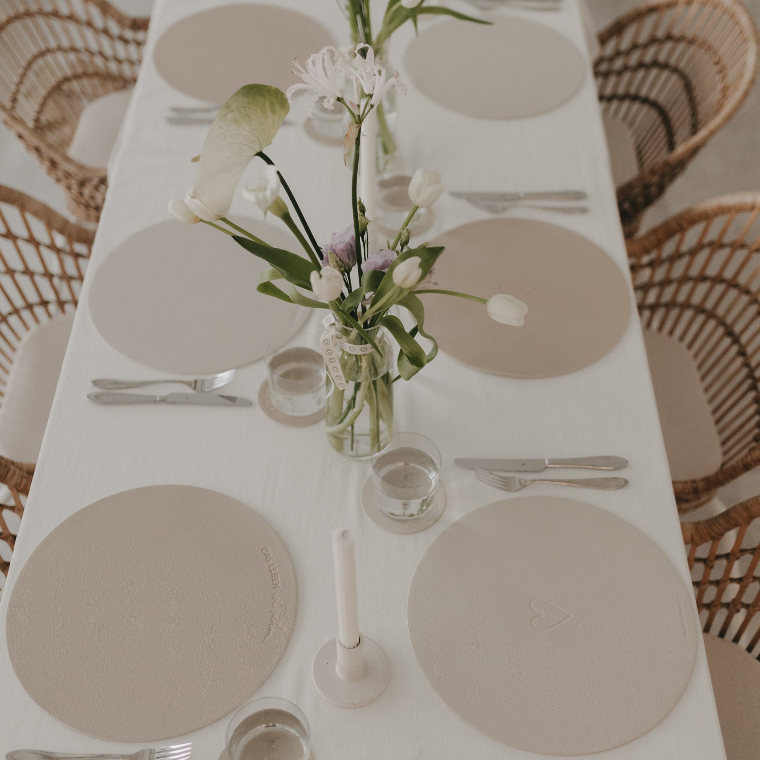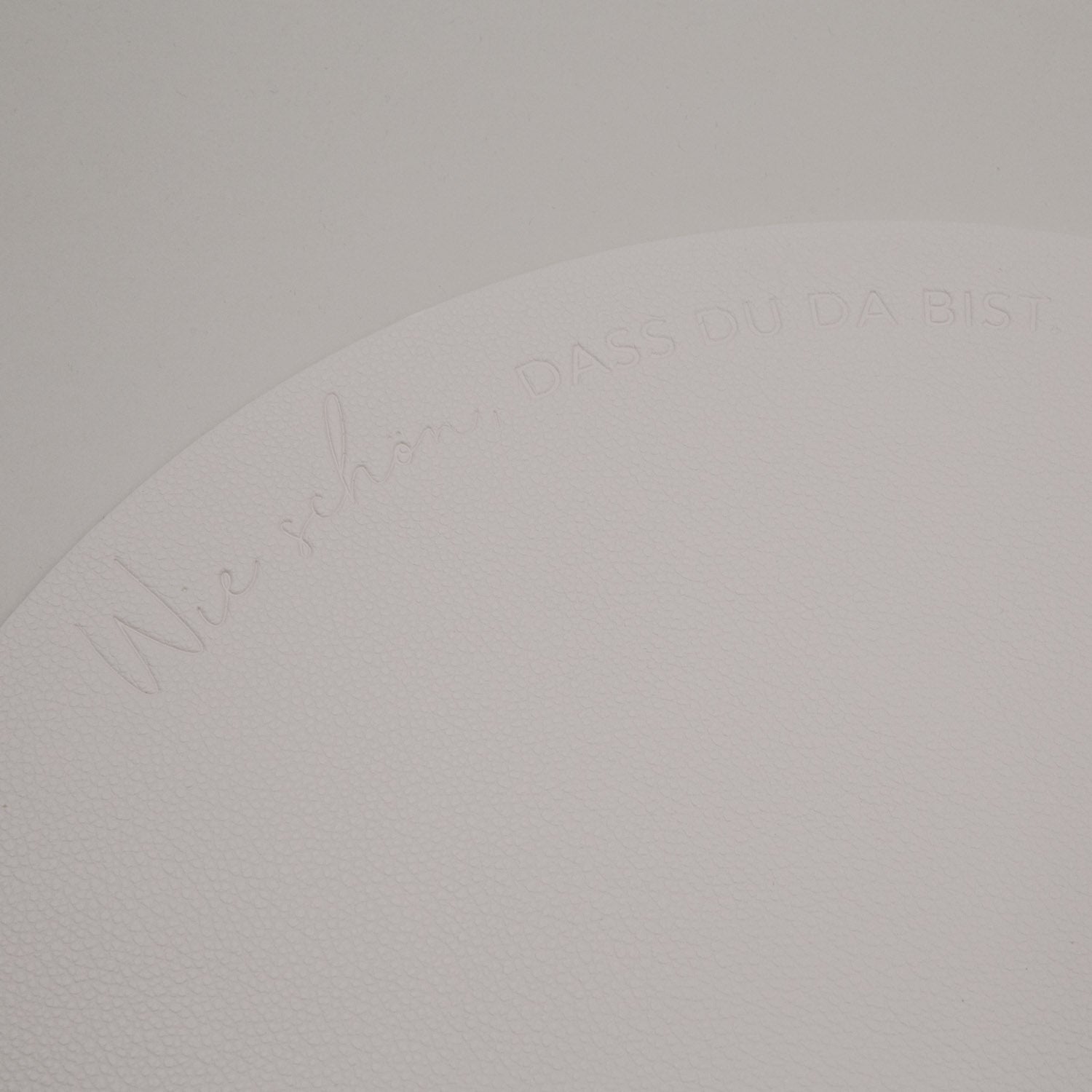 Das wendbare Platzset „Wie schön“ in Creme von Eulenschnitt bringt eine warme, ruhige Stimmung auf deinen Tisch. Eine Seite trägt den Spruch „Wie schön, dass du da bist“, die andere ein zart geprägtes Herz. Schlicht im Design und wunderbar vielseitig – für Alltag und besondere Momente.
